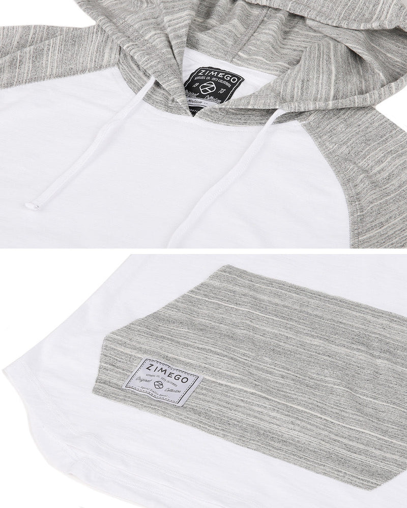 • Contrast raglan hoodie with contrast kangaroo pocket and rounded bottom hem